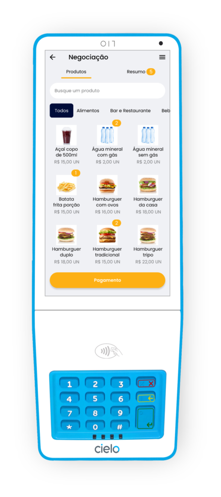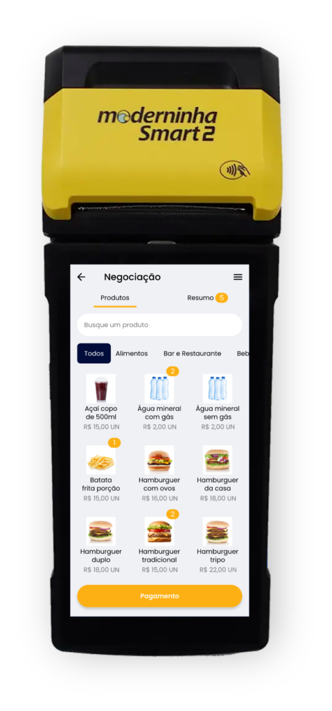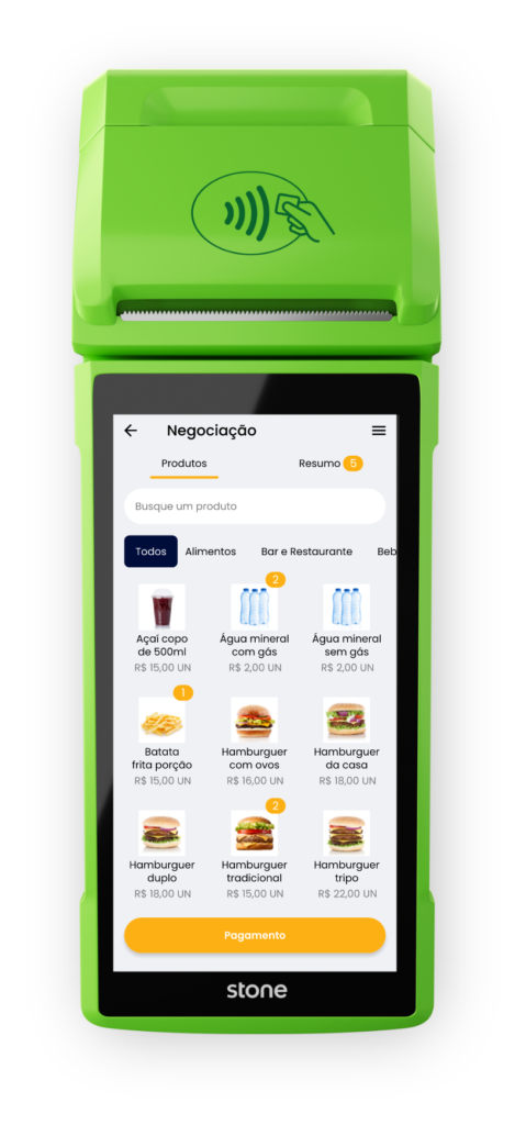 Use o leitor de código de barras, busca inteligente ou a divisão por categorias para adicionar produtos ao caixa e finalizar vendas usando diversas formas de pagamento.