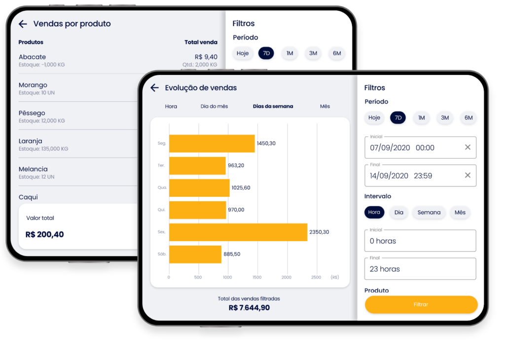 Você pode fazer fechamentos diretamente no caixa, acompanhar vendas e ver relatórios por dispositivo e período para tomar decisões mais acertivas.